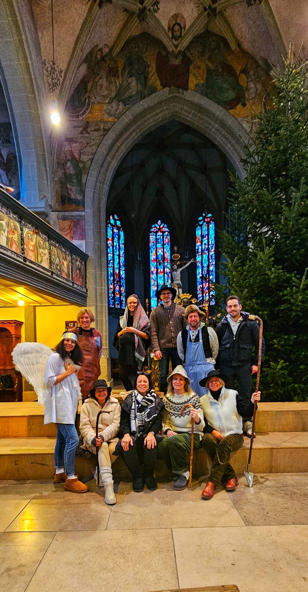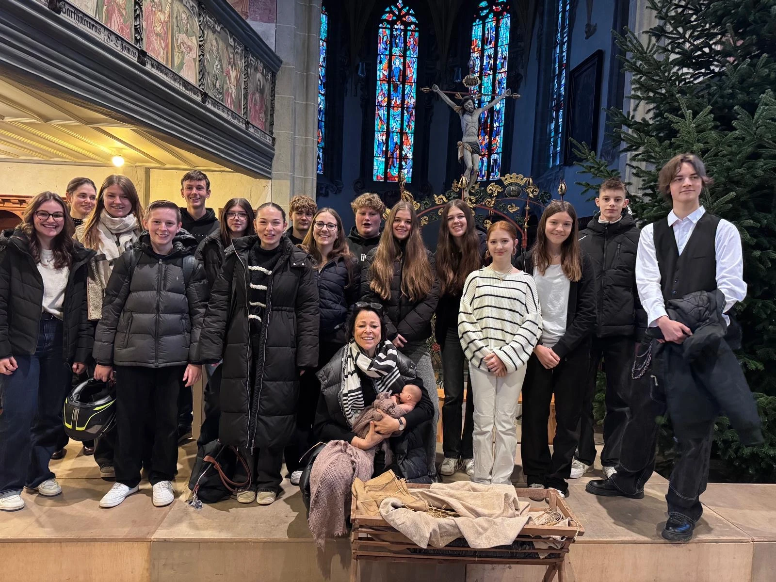 Ein humorvolles Anspiel der Schülerinnen der Klasse 10 sorgte für Lacher und Nachdenklichkeit zugleich. Sie stellten die Frage, ob ein Krippenspiel vielleicht eine „Krankheit“ oder „Diagnose“ sein könnte und führten damit die Besucherinnen und Besucher charmant in die Welt des klassischen Krippenspiels ein, das anschließend von den Lehrkräften (siehe Foto) der Realschule vorbereitet und aufgeführt wurde. Die überraschende Umsetzung sorgte für große Aufmerksamkeit und ein Schmunzeln im Kirchenraum. Die Predigt zum Gottesdienstmotto verfassten die Schüler*innen der 10a/c gemeinsam mit Frau Liebhardt. (Link)