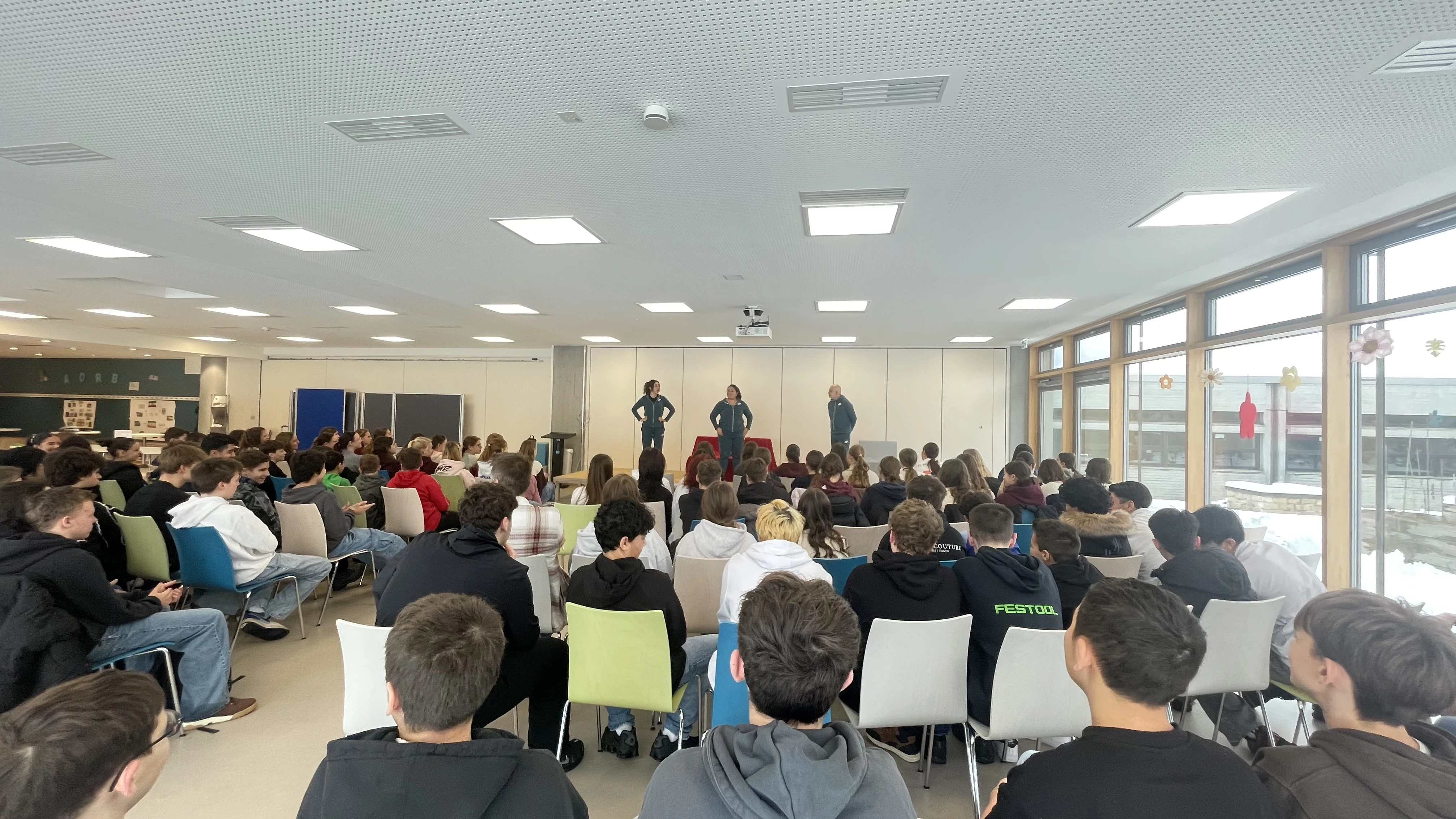 Im Anschluss an das 90-minütige Theaterstück führten die Schauspieler*innen ebenso lange Workshops in den einzelnen Klassen durch. Ziel war es, das Gesehene gemeinsam aufzuarbeiten und den Bezug zur eigenen Lebenswelt herzustellen. Die Schülerinnen und Schüler hatten die Möglichkeit, Fragen zu stellen, eigene Erfahrungen einzubringen und über Verantwortung, Zivilcourage und den Umgang mit sozialen Medien zu reflektieren.