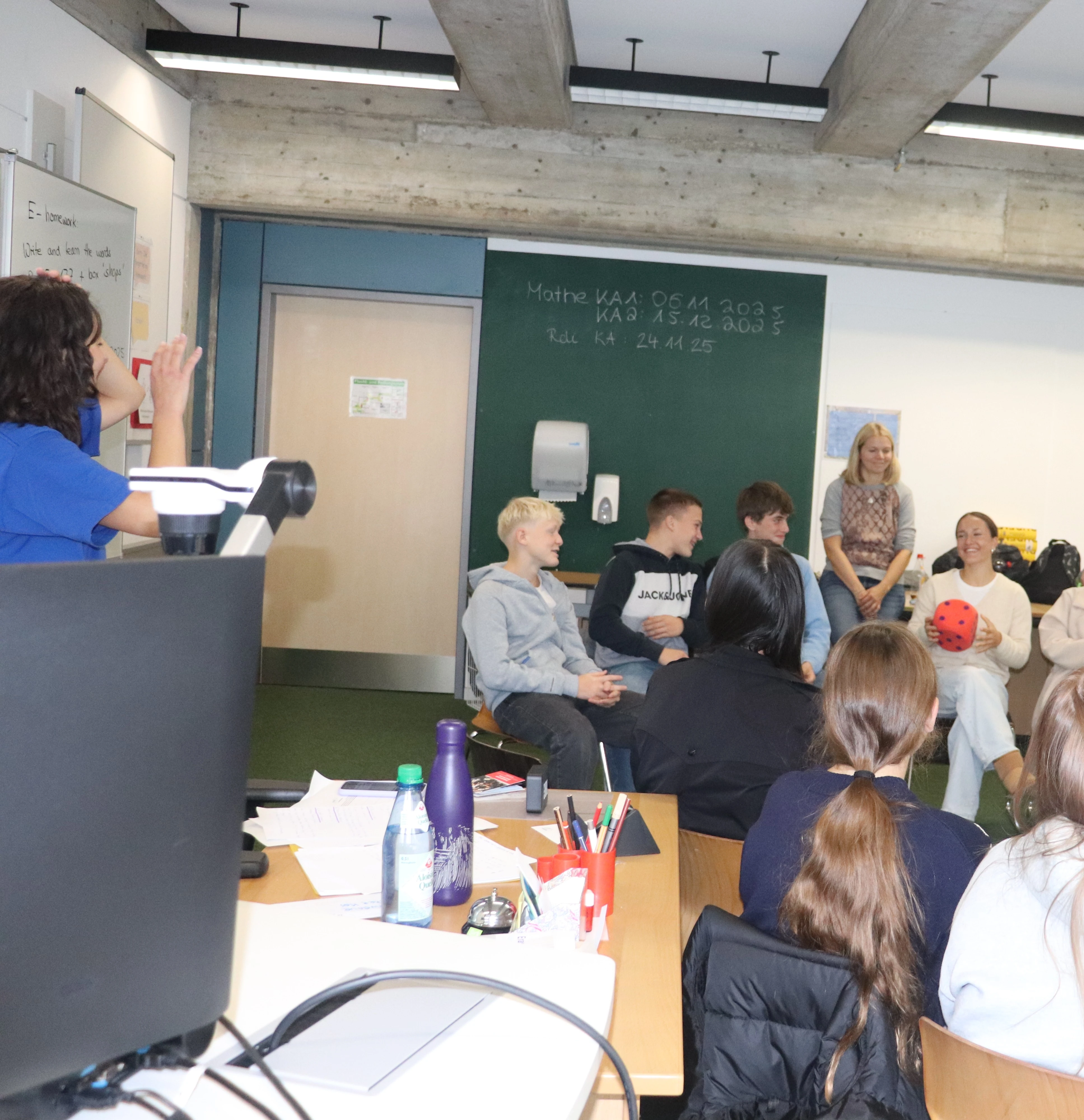 Die 23-jährige Mme Nievollet vom France Mobil, aufgewachsen in Grenoble, gestaltete einen abwechslungsreichen Vormittag für die Klassen 7–10. In jeweils einer Unterrichtsstunde brachte sie den Schülerinnen und Schülern mit spielerischen Aktivitäten die französische Sprache näher.